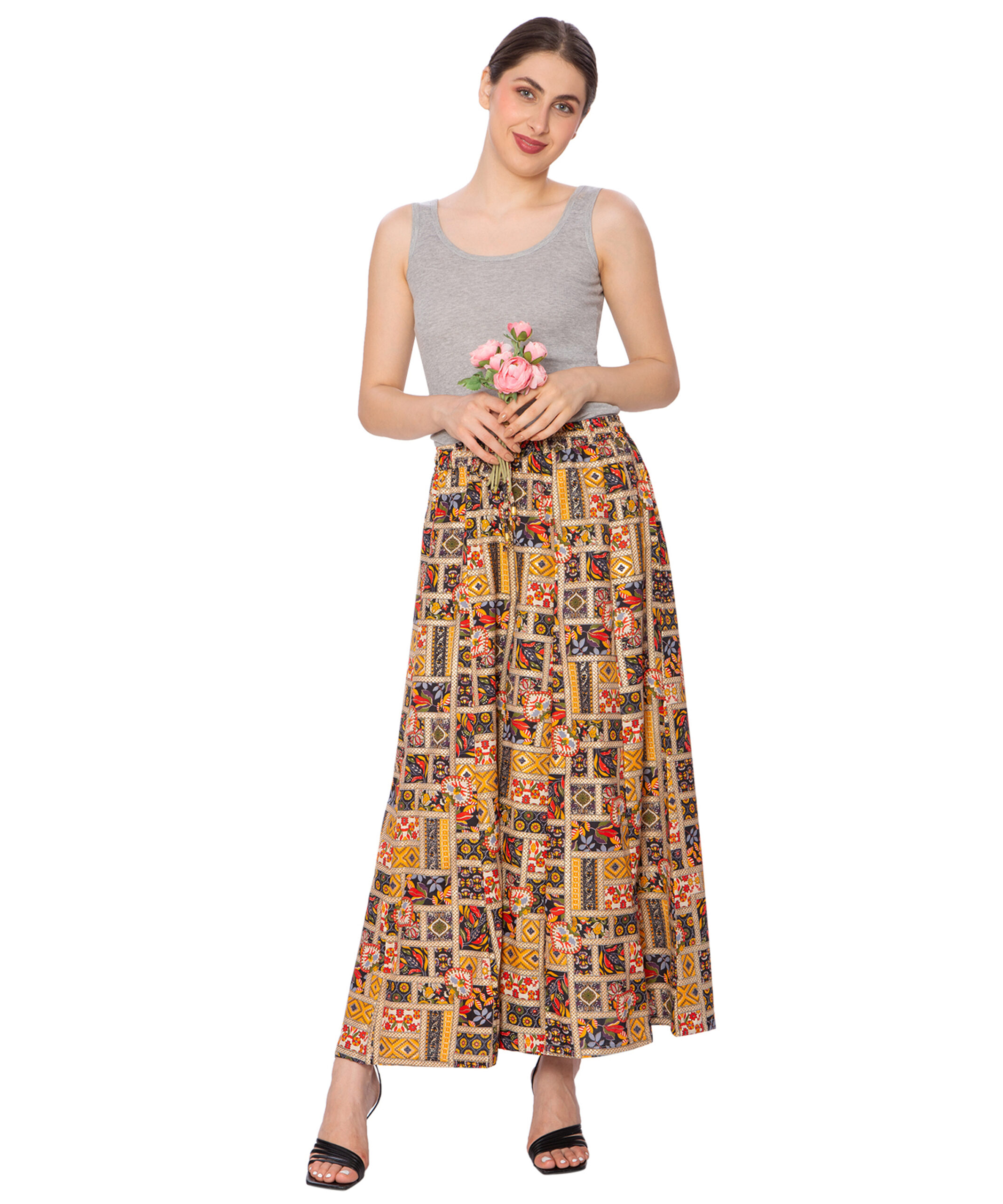 Crafted from premium rayon, these palazzo pants are breathable and soft, providing maximum comfort and a flowing drape that is perfect for warm weather wear.